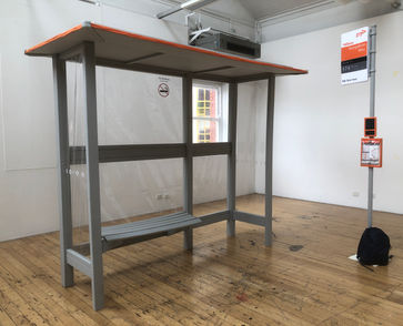 My Lawyer the Bus Stop, is a life scale, soft sculpture, replication of a public bus stop and accompanying sign, personalised to reflect and personal narrative.